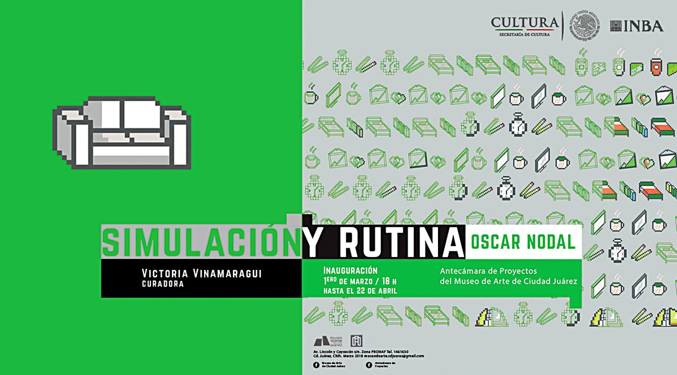 Exploraciones en la estructura narrativa de los videojuegos dentro del contexto de Ciudad Juárez y el arte de nuevos medios. Oscar Nodal utiliza plataformas como el Machinima y el RPG Maker como herramienta para convertir la rutina diaria del artista en una simulación basándose en el género del Game Art.